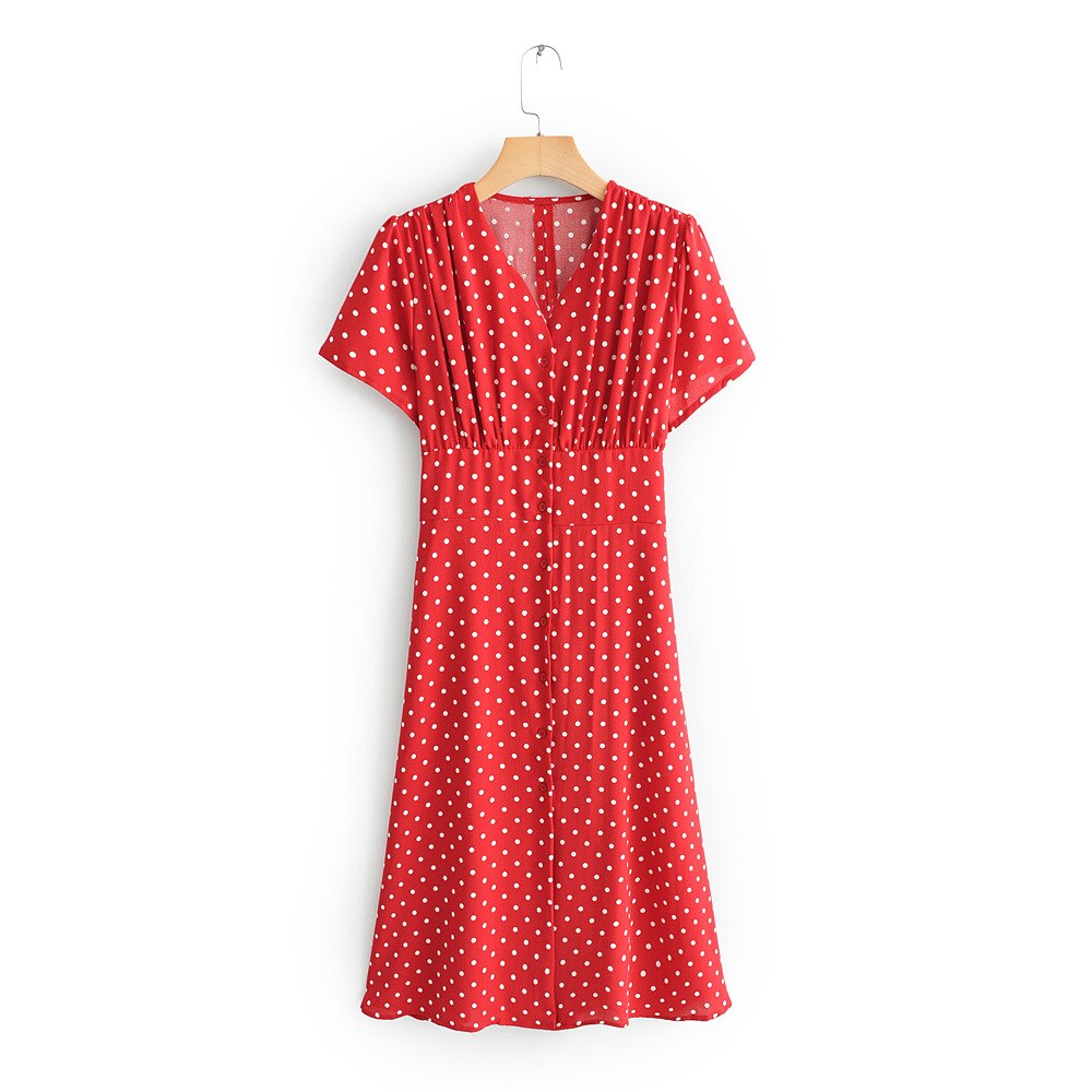 A038-2019 Spring New Style Western Style WOMEN'S Dress Little Red Book Recommend the French Non-mainstream Retro Short-sleeve Dr